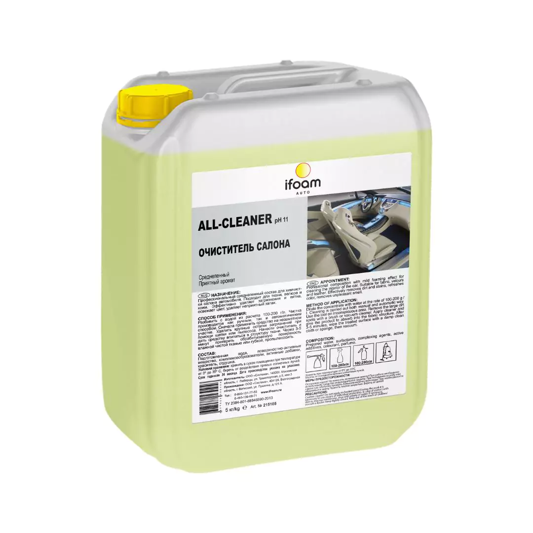 Avtomobilin salonunu istənilən çirkləndiricilərdən təmizləmək üçün hazır məhsul. Əksər səth növləri üçün uyğundur. Konsentrat. Avtomobilin salonunu istənilən kirdən təmizləmək üçün universal köpük məhsulu. Əksər səth növləri üçün uyğundur: parça, məxmər, təbii və süni dəri, plastik.