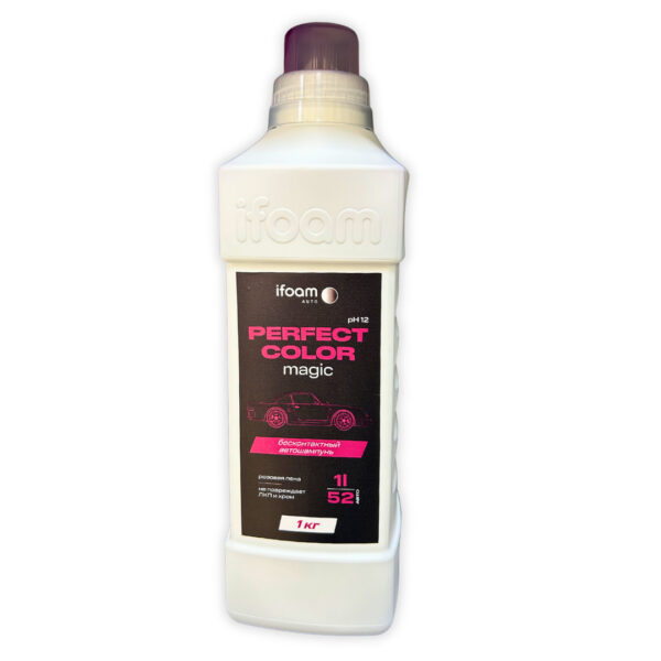 PERFECT COLOR Magic — yüksək effektivliyə malik konsentratlaşdırılmış təmizləyici vasitədir. Qatı çəhrayı köpük yaradan bu məhsul avtomobil kuzovunu toz, palçıq, yağ ləkələri və həşərat izlərindən sürətli və tam təhlükəsiz şəkildə təmizləyir.